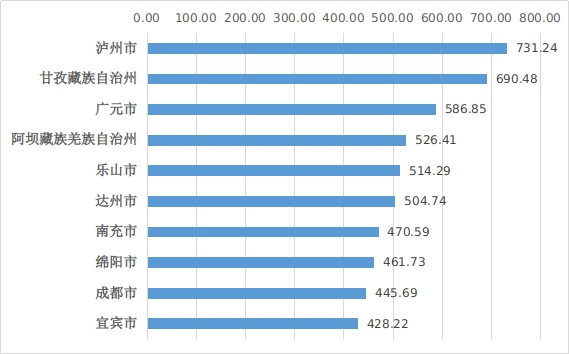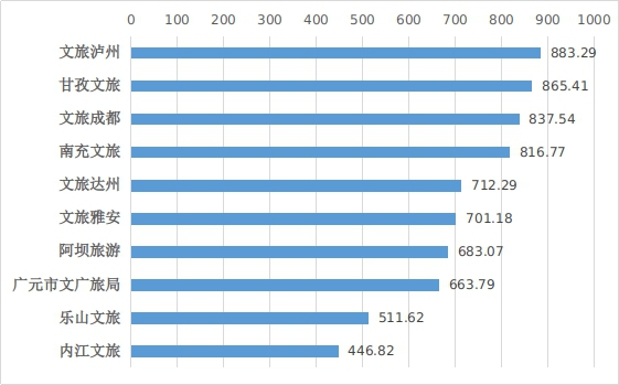 图1 2022年10月四川省市(州)级文旅新媒体综合传播力指数TOP10