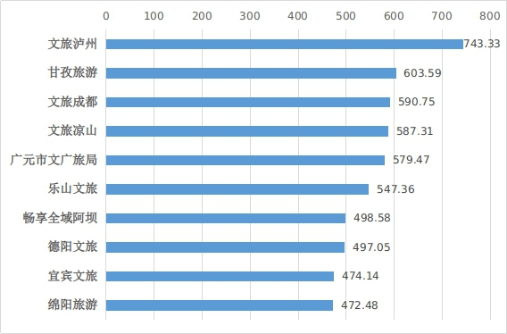 文旅头条号传播指数指标计算综合考量发文量、阅读量、图文收藏量、图文分享量、图文评论量、微头条点赞量、微头条评论量、微头条收藏量、直播评论量、涨粉量等。从10月四川省市(州)文化和旅游行政部门头条号的表现看,前十位排名为:自贡文化旅游、乐山文广旅游局、文旅泸州、广元市文广旅局、好玩甘孜、宜宾文旅、巴中旅游、绵阳旅游、阿坝州旅游、雅安文化体育和旅游局。