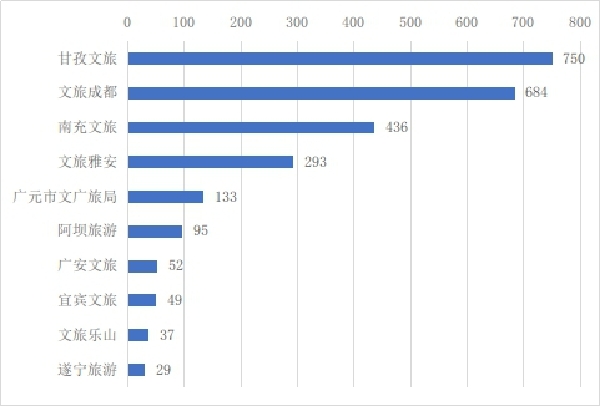 图5:2022年4月四川省市(州)级文旅政务微博原创微博发文数TOP10