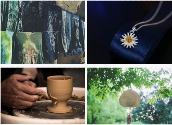 首饰、蓝染、金作银艺、陶瓷器物、石头画、绳编、花艺、木艺、扇艺......