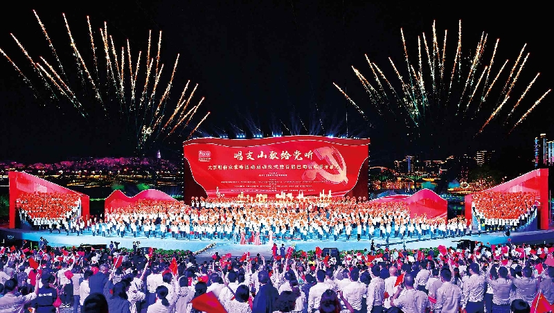 ▲“唱支山歌给党听”大家唱群众歌咏活动暨首届巴蜀合唱节在南充举办