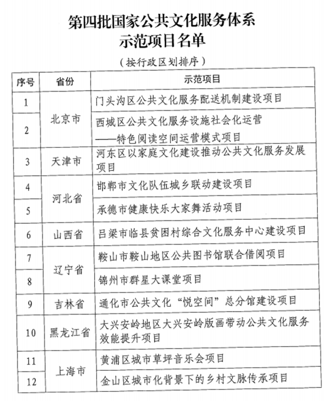 权威声音|文化和旅游部公布第四批国家公共文化服务示范区(项目)名单