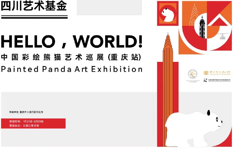 1月25日,由四川艺术基金资助,四川省文化馆、中国熊猫文创知名品牌“GOGOPANDA熊猫出发”共同举办的“HELLO,WORLD!——中国彩绘熊猫艺术展”在重庆大渡口美术馆开展。