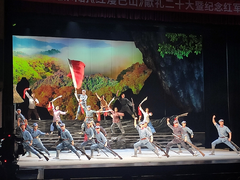 青春版川剧《红漫巴山》以红四方面军北上后为背景,讲述了在大巴山的南江留下了一支革命队伍“巴山游击队”的系列故事。该剧由四川省川剧院、中共南江县委、南江县人民政府、四川省戏剧家协会、陈智林川剧技能大师工作室、四川丝路青年文化发展集团联合出品打造,为纪念红军入川90周年,川剧《红漫巴山》剧组踔厉奋发,勇毅前行,连续奋战近一个月,从坐排、素排、响排、联排、彩排到首演,一路笃行,成效显著。