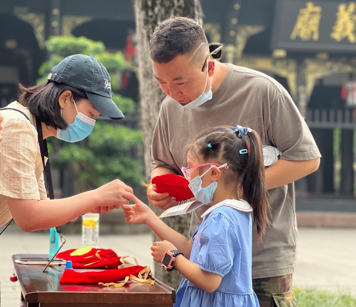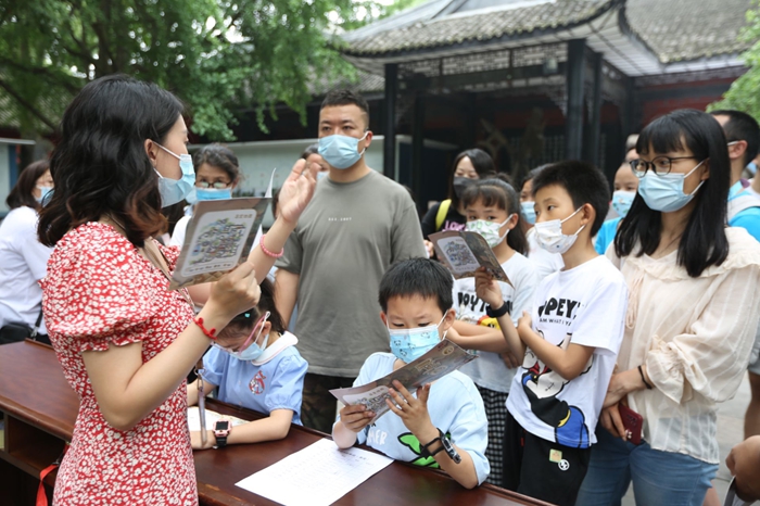 一场趣味的博物馆之旅正在开启。今年6月1日,20组亲子家庭来到成都武侯祠博物馆,打开探索博物馆新方式。小朋友和家长们化身为“寻宝达人”,领取寻找神兽的任务。在学习了有关“龙生九子”的传统文化知识以后,各组亲子家庭踏上“寻宝之旅”,展开脑力对决,找寻藏匿在武侯祠古建筑中的龙子身影。