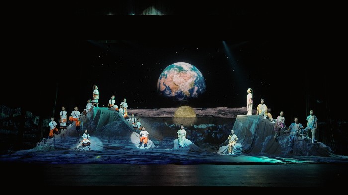 “我们反复讨论,是像春晚那样干净地呈现,还是做得更丰富?最后我们选择回归自然场景,用投影构建不同时空的人望月的画面,甚至设计‘角色转换’——从在地球上看月,到在月球上回望地球。”