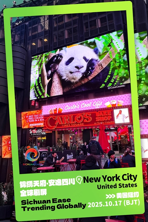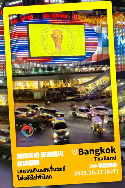 北京时间10月17日,“锦绣天府·安逸四川”文化旅游标识登陆位于美国纽约Times Square、英国伦敦Westfield购物中心、日本东京Cross Shinjuku Vision、新加坡Wilkie Edge大厦和泰国曼谷MBK购物中心五国地标大屏,吸引全球关注。