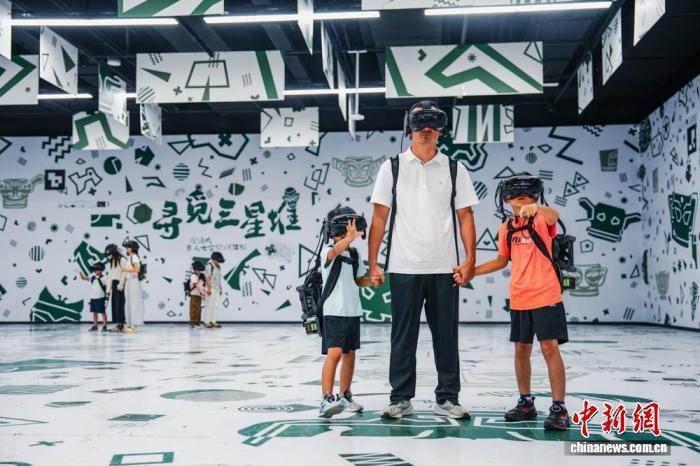 图为游客在三星堆博物馆通过VR“沉浸式”体验考古发掘现场。三星堆博物馆供图