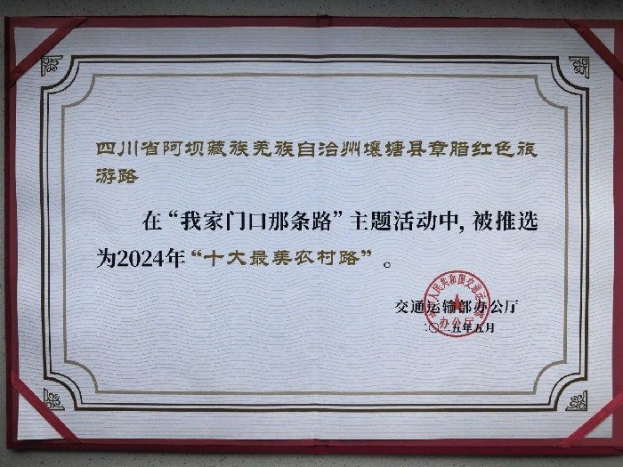壤塘章腊红色旅游路获全国“十大最美农村路”