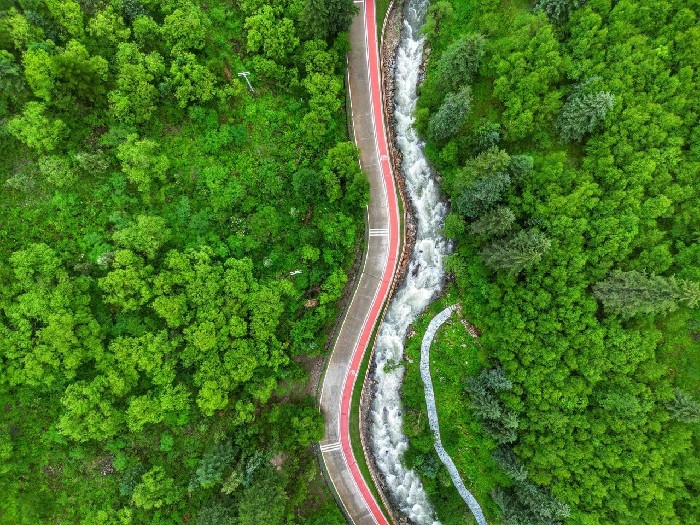在建设方面,章腊红色旅游路坚持生态优先、绿色发展的建设理念,将生态环境保护贯穿于规划建设全过程。通过创新采用铅丝笼挡墙等技术措施,有效减少路基开挖量60%,最大限度保护了章腊沟沿线的原始森林生态。道路两侧配套建设的健康步道,既服务村民日常健身需求,又为游客提供优质的徒步体验,现已成为知名的"最美高原徒步路线"。
