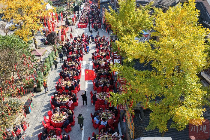 2025年11月20日,在四川省阿坝州汶川县映秀镇,当地群众吃坝坝宴庆祝羌年。