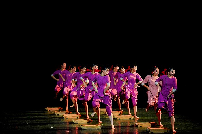 舞蹈类作品《酒曲踩出幸福谣》灵感源于主创团队对四川邛崃酒厂的实地探访,作品将劳动场景转化为舞台语言,通过动作编排、服饰道具和沉浸式的舞台设计,让更多人看见非遗之美。为精准呈现“踩曲”工艺,主创团队反复揣摩足尖力度与身体韵律,从模拟曲块发酵的弧度,到展现酒曲升华的轻盈,每个动作都历经千锤百炼。终评演出中,演员们赤脚踩着酒曲,口号声与欢笑声交织,把劳动者的勤恳与对生活的热爱酿成动人乐章,尽显群众文艺的真挚力量。