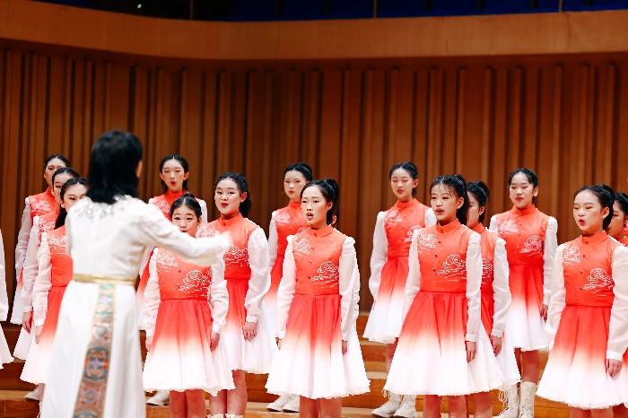 群众合唱类“成都童声合唱团”是成都市重点培育的群众文艺团队。本次群星奖终评,“成都童声合唱团”带来的两首参赛曲目为规定作品《我和我的祖国》与自选原创《雪莲花》。其中,《我和我的祖国》基于余忠元女声三部合唱版本进行改编,以童声赋予经典红歌鲜活气息;《雪莲花》则是为“成都童声合唱团”量身打造的,彰显民族音乐的独特魅力。“成都童声合唱团”的顺利参赛还有一个重大挑战:在排练组织上,为保证作品能有最好的呈现,主创团队制定了详细的排演计划。由于合唱团团员来自成都市39所中小学校,协调沟通组织工作难度很大,最终在成都市教育局、各中小学的大力支持下,在主创团队、合唱团员们的辛勤付出下,完成了精彩呈现。