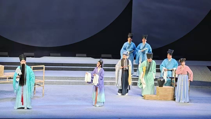 值得一提的是,《梦回东坡》的演员阵容中还有不少00后青年演员担纲主要角色,他们用扎实的功底、灵动的演绎与对传统文化的热爱,为川剧艺术注入了青春活力。此次演出中,“苏东坡”的扮演者就是陈智林的学生、四川省川剧院青年演员雷云。他希望年轻演员也能在表演过程中享受艺术带来的快乐,并通过自己的表演将川剧艺术传递给更多的人。这种传递不仅是对艺术本身的传承,更是对文化精神的一种传递和弘扬。“‘传播’变成‘传递’,这就是文化自身的一种魅力所在。”