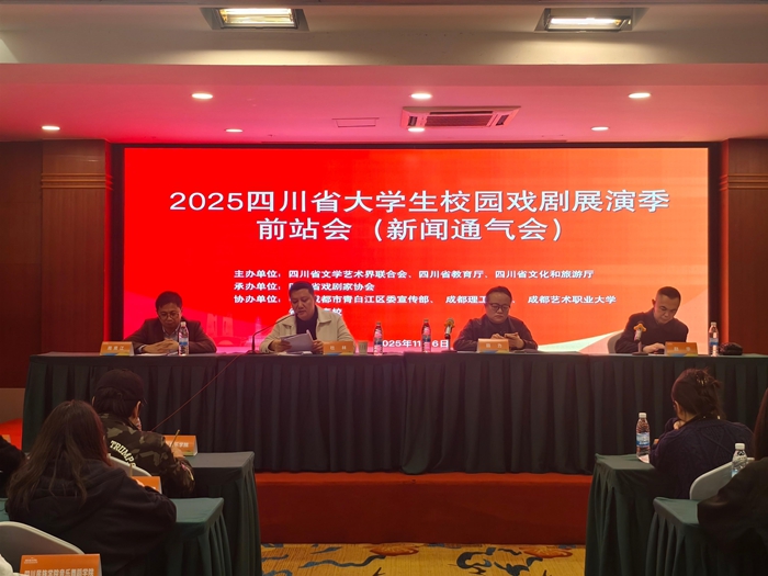 11月6日,由四川省文学艺术界联合会、四川省教育厅、四川省文化和旅游厅主办,四川省戏剧家协会承办的2025四川省大学生校园戏剧展演季前站会(新闻通气会)在成都召开。