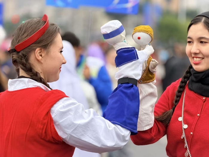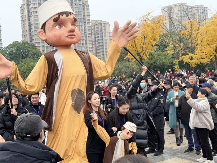 令人动容的是国际木偶艺术家代表团的压轴登场:300余名来自阿尔及利亚、俄罗斯、印度尼西亚等10个国家,以及中国香港、辽宁、福建、四川等20个省区市的艺术精英并肩而行。不少演员还特意带着木偶走入围观人群互动,有的让木偶抬手向观众致意,有的操纵木偶做出俏皮鬼脸,引得现场欢呼与欢笑此起彼伏,大人小孩纷纷挥手回应,指尖的温度与艺术的灵动在此刻交融,将无国界的艺术交响推向高潮。