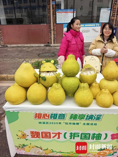 “我们家从1982年开始种柚子,今年能摘几万斤,大部分都是水果商上门来收,听说今天的活动请了很多企业家过来,我就自己背了一些来,看看能不能卖个好价钱。”12月6日一大早,四川省泸州市纳溪区护国镇藕花村1社66岁的村民谢怀英,背着满满一筐护国柚,来到纳溪区2025“玩市柚橙”文旅促消费活动现场,在这里,家家户户盛产的护国柚与天仙镇的红橙、上马镇的果冻橙等特色品种一起,开启了一场有趣、有料、有乐的丰收盛宴。