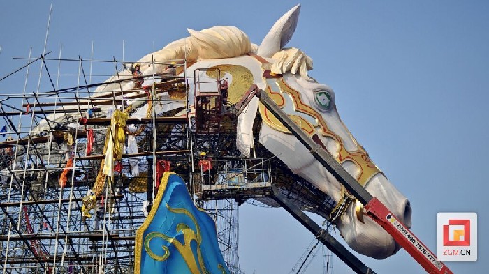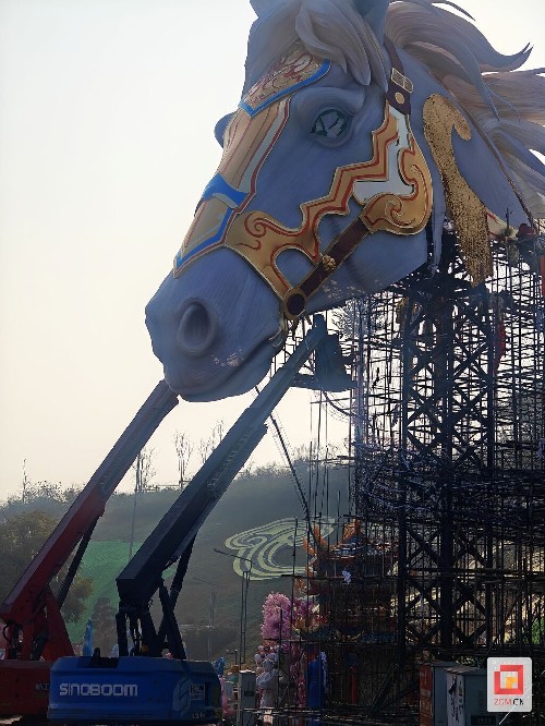 1月10日,第三十二届自贡国际恐龙灯会的举办地——中华彩灯大世界内,施工正酣。记者走进园区,探寻本届灯会中备受期待的“生肖”主题灯组。在曾诞生过“生命之树”“精卫女神”“青城双姝”等网红灯组的第14标段,一个以马为核心、讲述木兰传奇的巨型灯组正在紧张制作,它将承载起人们对农历马年的美好期盼。