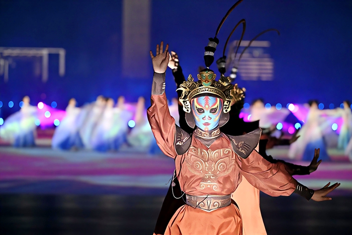 例如,总台跨年晚会版适应大舞台要求,精炼舞蹈元素,带来川剧高腔与电子音乐的混搭。成都世运会开幕式版在1分钟的有限时长内,融入川剧帮腔、唱腔、打击乐及达州渠县耍锣鼓等技艺,更具传统韵味,是节目走向大众的关键一步。成都世运会火种采集仪式现场的演出则是在户外广场的演绎,通过“青铜幻影·街舞变脸”“花旦灵韵·古蜀柔波”“天边行·文明溯光”三幕完整版的叙事,融入了剧情元素。