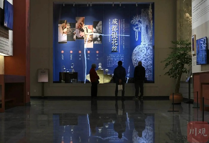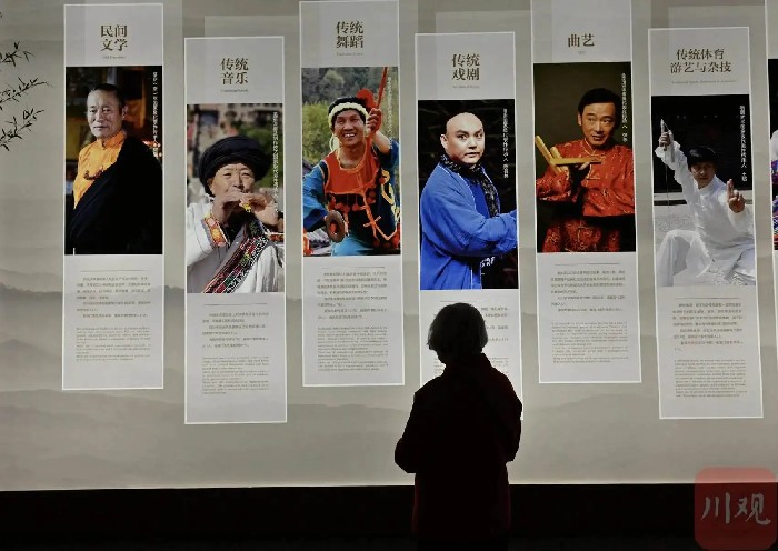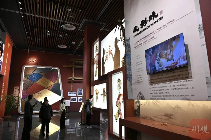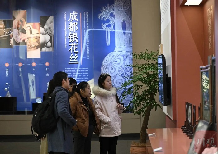 市民游客在四川省非物质文化遗产馆参观。