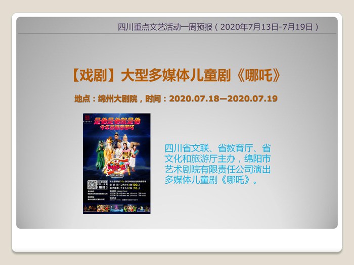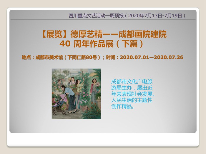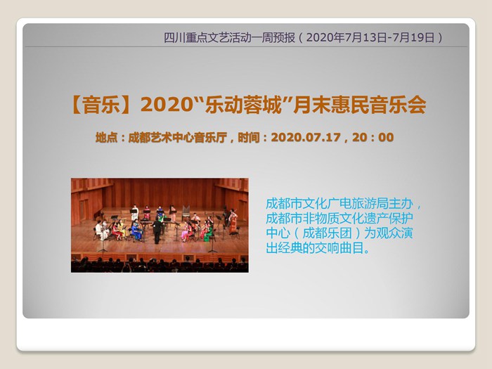 四川重点文艺活动一周预报 (2020年7月13日-7月19日)