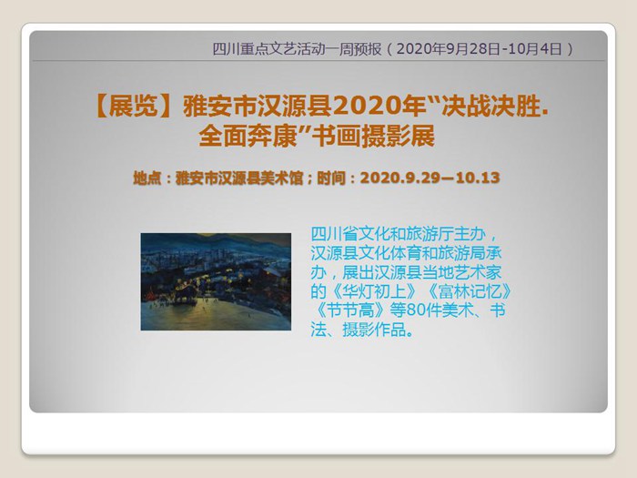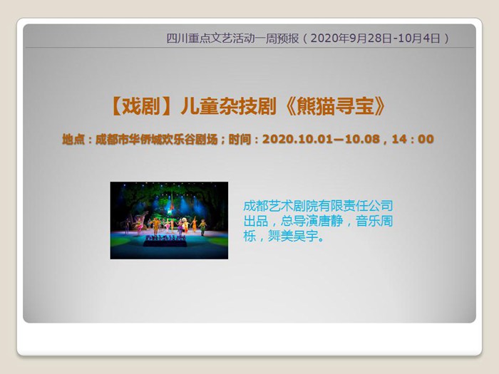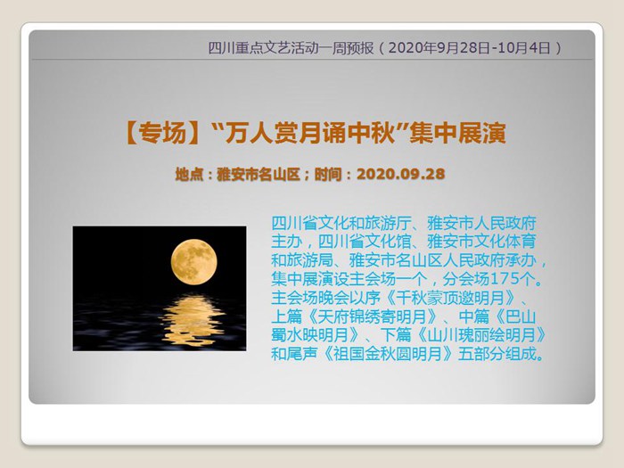 四川重点文艺活动一周预报(2020年9月28日-10月4日)