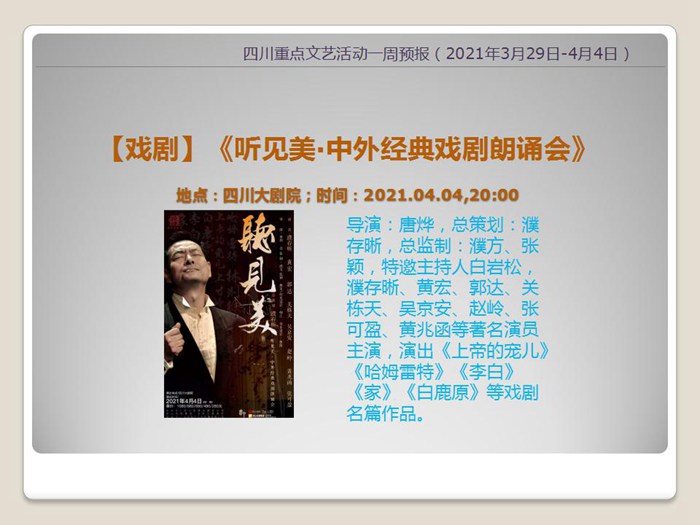 四川重点文艺活动一周预报(2021年3月29日-4月4日)