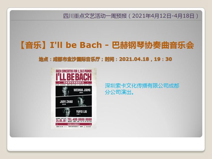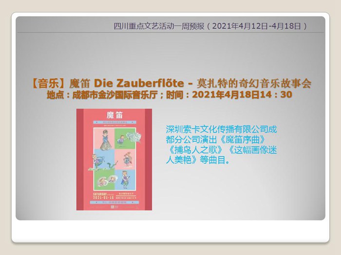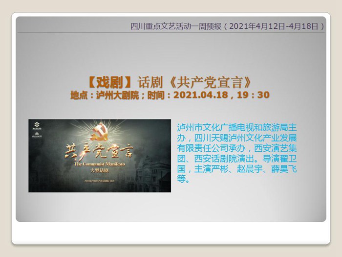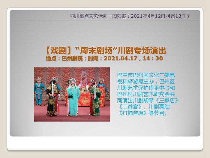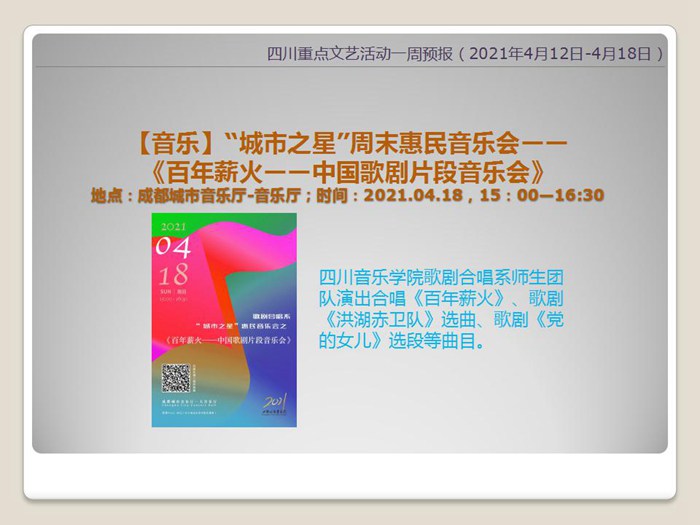 四川重点文艺活动一周预报(2021年4月12日-4月18日)