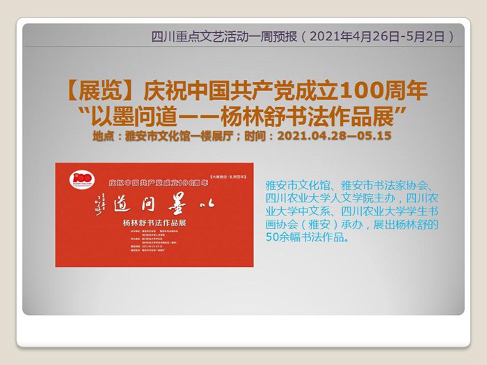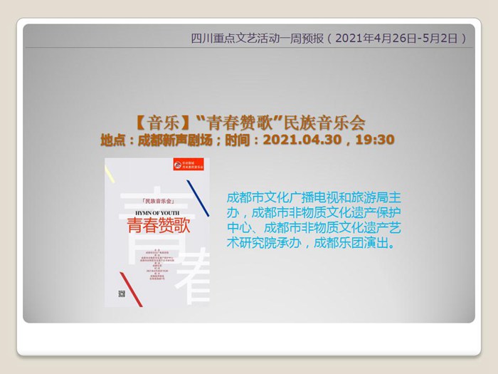 四川重点文艺活动一周预报(2021年4月26日-5月2日)