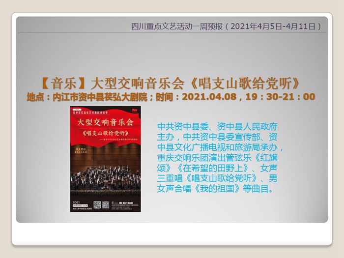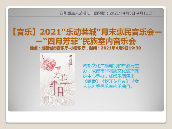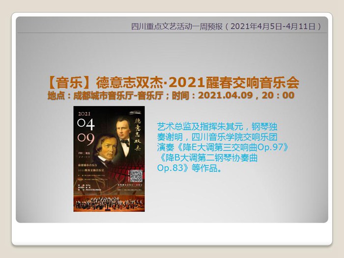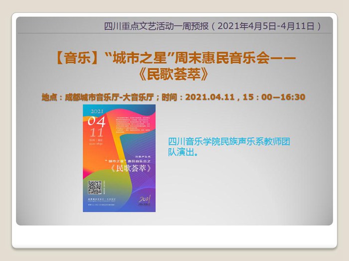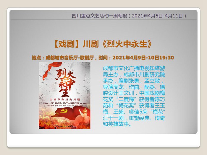 四川重点文艺活动一周预报(2021年4月5日-4月11日)