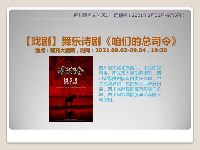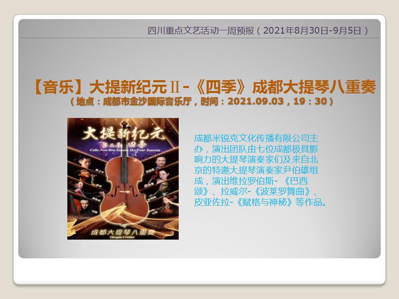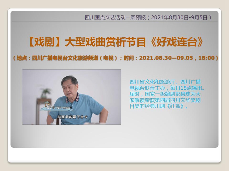 四川重点文艺活动一周预报(2021年8月30日-9月5日)
