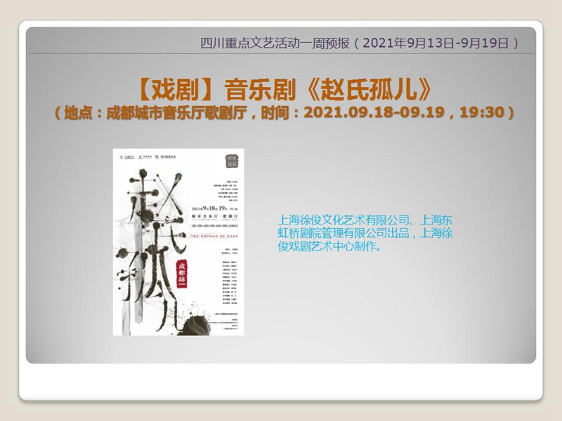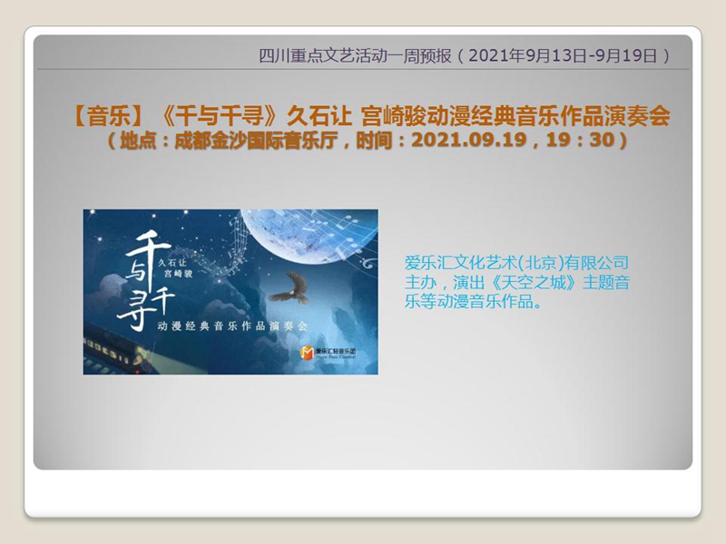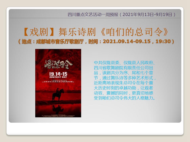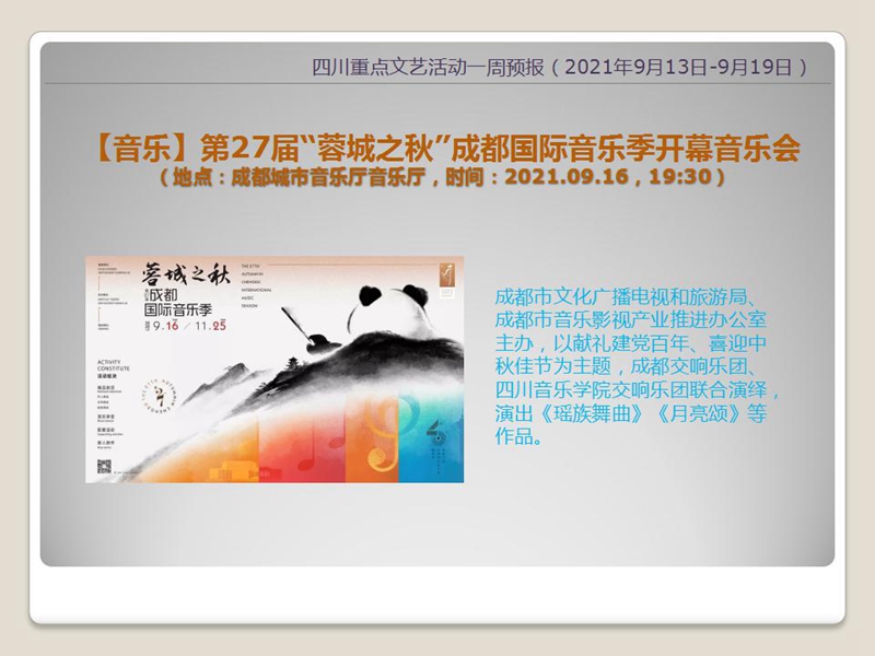 四川重点文艺活动一周预报(2021年9月13日-9月19日)