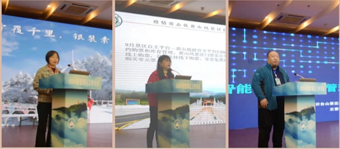 在经验交流中,来自峨眉山、黄山、焦作云台山的代表从不同角度,分享了各自风景名胜区的资源特色,以及在智慧景区建设方面的工作亮点和有益经验。同时,各景区也围绕“数据赋能,共享发展”展开交流学习,讨论如何利用现代科技进一步实现传统景区的智慧化转型。