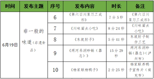 此外,还有眉山市选送的“东坡肘子制作工艺”、南充市选送的“杨鸭子香酥鸭传统制作技艺”、泸州市选送的“两河吊洞砂锅”和四川旅游学院川菜发展研究中心专门录制的《川菜制作专题片》等非遗美食影片为您讲述川菜的前世今生,秒杀您的唾沫、吊足您的胃口。