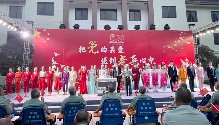 2021年6月28日晚,在隆重庆祝中国共产党成立100周年之际,受中共四川省委、省人民政府委托,退役军人事务厅、文化和旅游厅在四川省革命伤残军人休养院举办“把党的关爱送到老兵心中”主题慰问演出。省歌舞剧院、省曲艺研究院、省川剧院、四川人民艺术剧院、四川交响乐团的56位文艺工作者为革命老英雄、老前辈送上精彩的演出,回顾党的光辉历程,传递党的关心关怀。46位革命伤残军人与少先队员、干部群众500余人观看了演出。