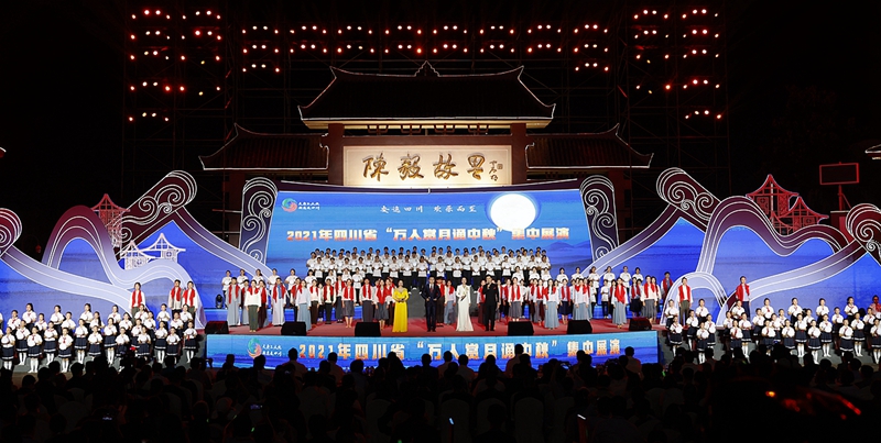 “万人赏月诵中秋,明月映照赤子心;百年征程风正劲,巴蜀共筑家国情……”9月17日晚,伴着欢歌笑语,2021年四川省“万人赏月诵中秋”集中展演活动(以下简称“集中展演”)在资阳市乐至县陈毅故里景区拉开帷幕。主会场晚会以序篇《明月赤子心》、上篇《桑城家国情》、下篇《巴蜀共明月》和尾声《月圆新时代》四个部分组成,通过赏月颂月、歌舞表演、诗词吟诵、杂技曲艺等形式,让大众感受到传统佳节欢乐祥和的同时,也沉醉在中华优秀传统文化的魅力中。