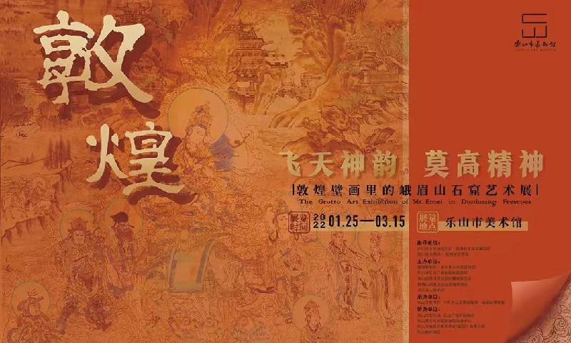 飞天神韵•莫高精神——敦煌壁画里的峨眉山石窟艺术展于1月25日—3月15日、3月31日—4月20日,分别在乐山市美术馆和峨眉山博物馆进行展出,展出复制洞窟、洞窟微缩模型、复制塑像、复制壁画、仿制乐器等共计160件展品,市民可凭预约信息免费观展。