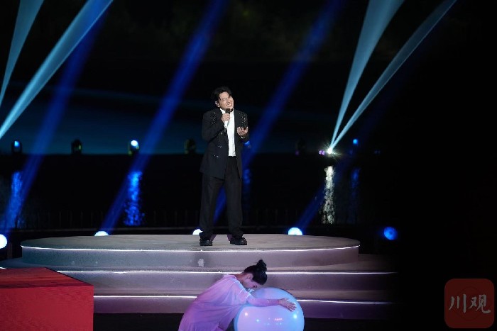 夜幕降临,梓潼县状元第文化旅游特色街区华灯初上,1160平方米的水上舞台与凤凰湖自然景观融为一体,构成一幅天然山水画卷。现场,众多文旅推介官与演艺嘉宾通过情景演绎、音乐歌舞等多元形式,向全球展示“锦绣天府·安逸四川”的亮丽名片。