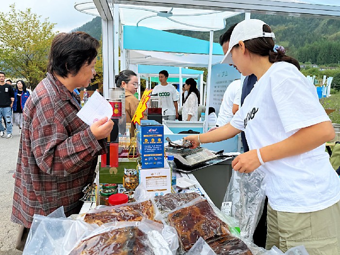 2025年四川省生态旅游节上游客购买森林里的土特产(雅安观察 廖诗雪 摄)