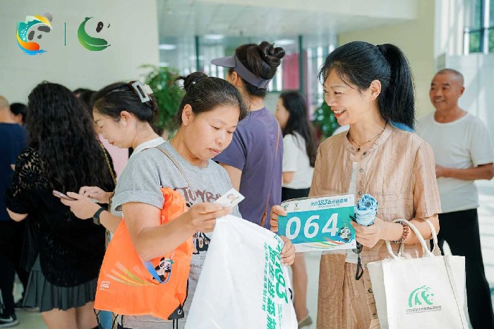 参加森林跑的市民游客在登记处领取物料(主办方授权提供)