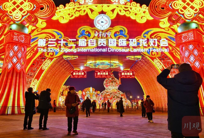 1月23日晚,第32届自贡国际恐龙灯会亮灯暨全省迎春文旅促消费活动启动仪式举行,自贡籍知名主持人蔡紫、网络达人可乐小樊同学等手提四个灯笼,联袂推介“马上入川,蜀里过年”的花样玩法。