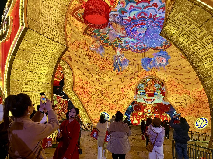 从文化传承到创意创新,本届灯会的多元魅力还体现在丰富的板块设置与互动体验中。灯会共设十大板块,以11组大型灯组与200余组中小型灯组构筑起全方位的沉浸式叙事空间。其中,“科技+互动”灯组亮点纷呈,通过引入虚拟歌手“洛天依”,融合前沿技术,让游客从被动“观看者”变为主动“创造者”。