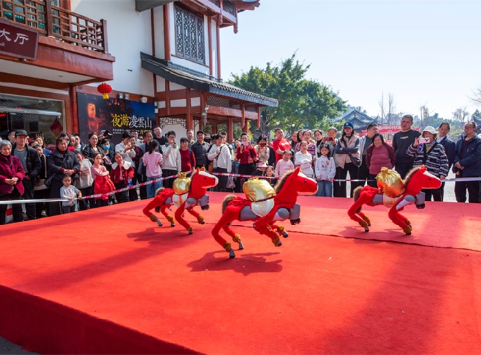 与此同时,景区推出“凌云福境奇妙游”,从嘉定坊至凌云山区域装点成“宋风”瓦舍勾栏。财神、探花郎、月下仙君等NPC穿梭巡游,和游客一起“集福”“传福”。在互动游戏区,好运投壶、套圈以及特别定制的“新年抓马”“马年套吉”等马年主题游戏前排起长龙。“我们希望游客不再是看客,而是成为画中人,在沉浸式体验中感受浓浓年味。”乐山大佛文物保护(景区)管委会有关负责人说。