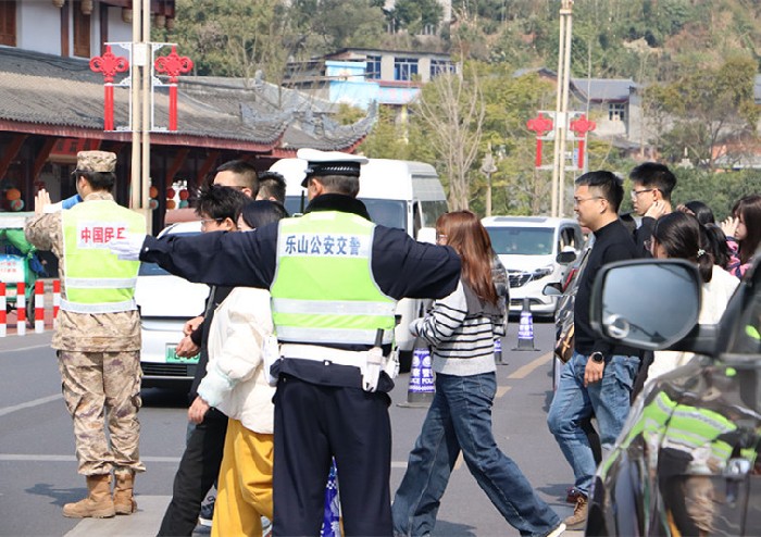 此外,百余名“大佛先锋”志愿者活跃在景区各个角落,为游客提供咨询引导服务。超过300名公安、交警、消防官兵及安保人员坚守一线,共同构筑起平安有序的游览环境。
