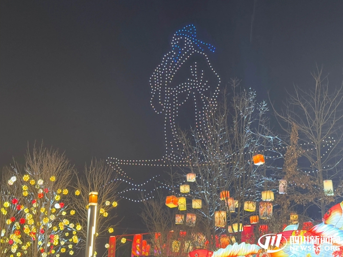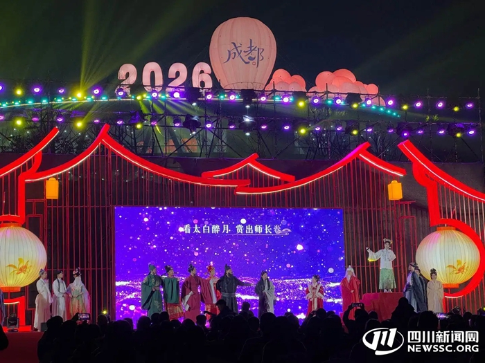 开灯仪式上,独具巴蜀特色的创意大型歌舞剧《盛世和鸣》震撼上演,通过舞蹈、音乐与光影的完美融合,呈现出具有巴蜀特色的创意大型歌舞剧目演出。随着演出进入高潮,全场共同倒数“5、4、3、2、1——”,启动按钮被按下。刹那间,舞台顶端“飞火流星”焰火直冲天际,大屏幕光影特效绚烂绽放,灯会特色灯组同步焕彩,将现场氛围推向高潮。