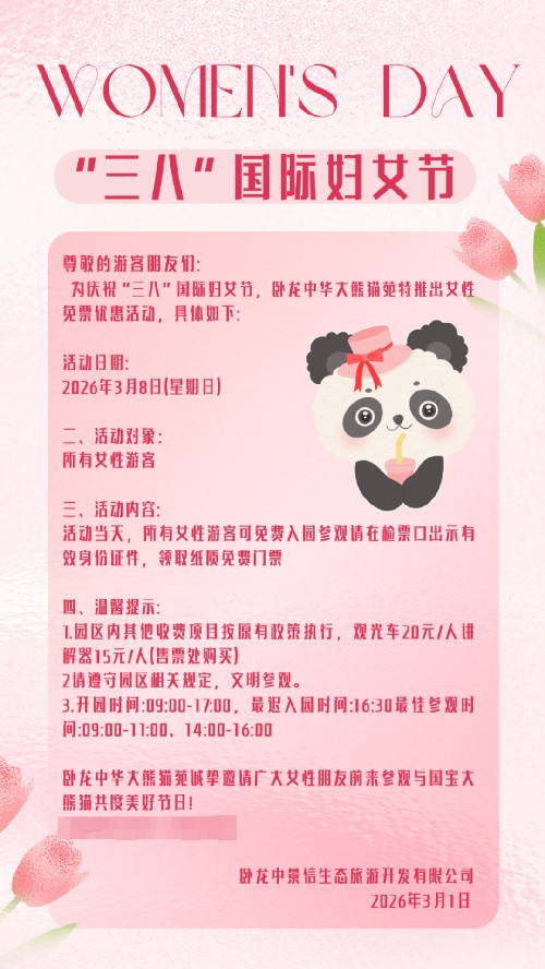 2026年3月7日-3月8日,所有女性游客免门票。