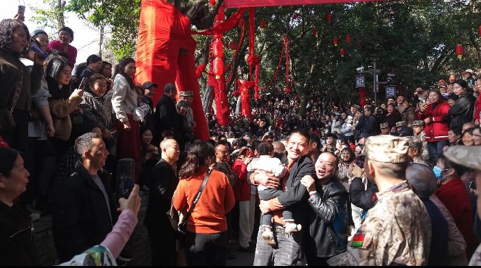 不仅是“拉保保”活动现场热闹非凡,整个广汉城区都洋溢着喜庆的氛围,吸引了周边地区的市民和游客慕名前来,一睹盛况。当天,参与这场盛事的人数达到了数十万人。