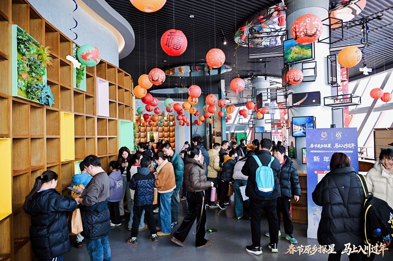 摘红包、猜灯谜,张灯结彩的新年游园活动妆点出浓浓的年味,土星、木星、月球,一个个星球气模营造出浩瀚的宇宙空间。
