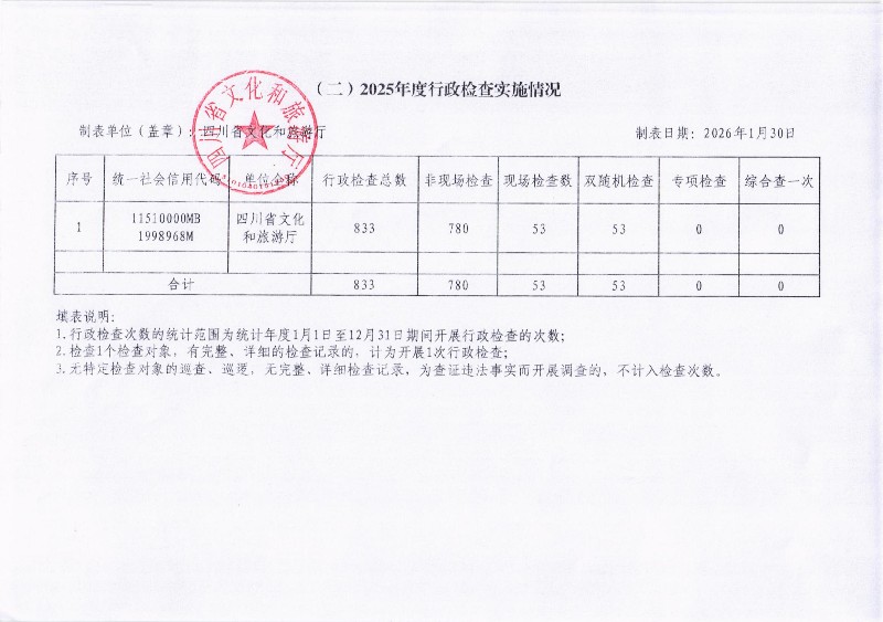 2025年度行政检查实施情况统计表
